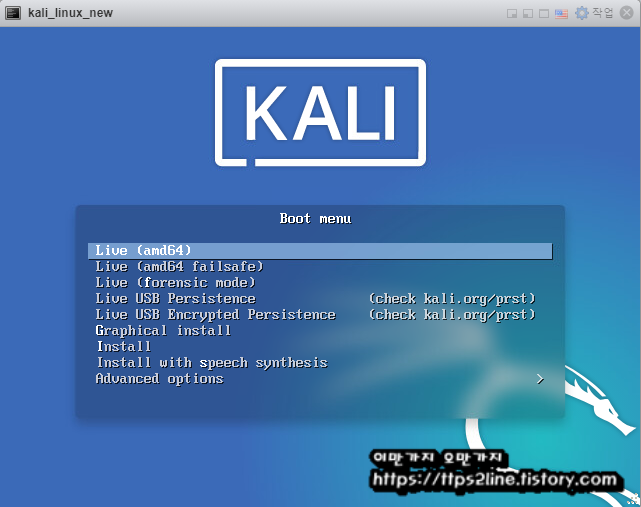 여기서 Live 메뉴를 설치하시면 별도의 설치 과정없이 kail Linux(칼리리눅스)를 사용 하 실 수 있습니다.