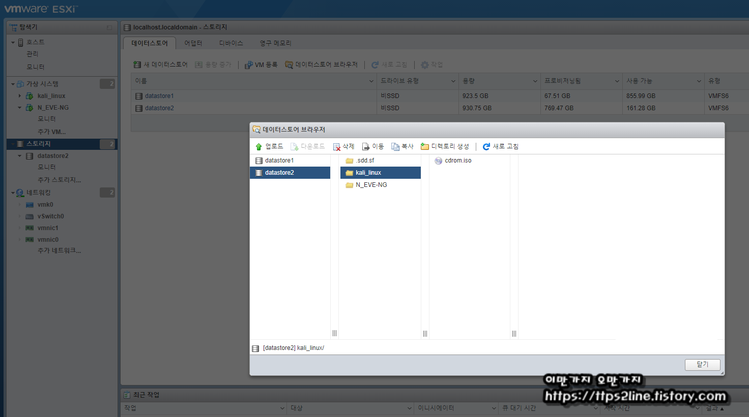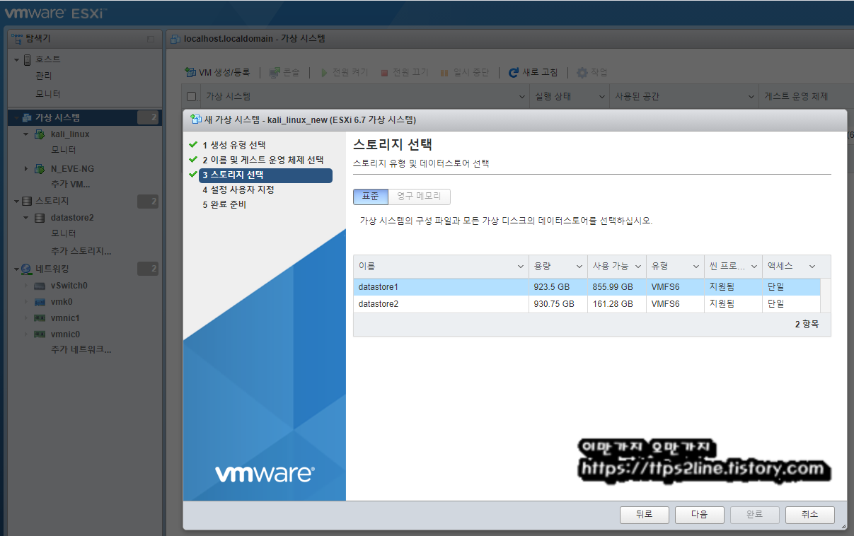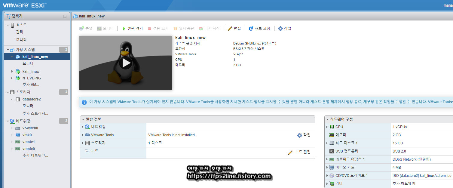 여기 까지 VMware-ESXi에 kali-Linux(칼리리눅스)를 설치하기 위한 사전준비는 마무리 되었습니다.