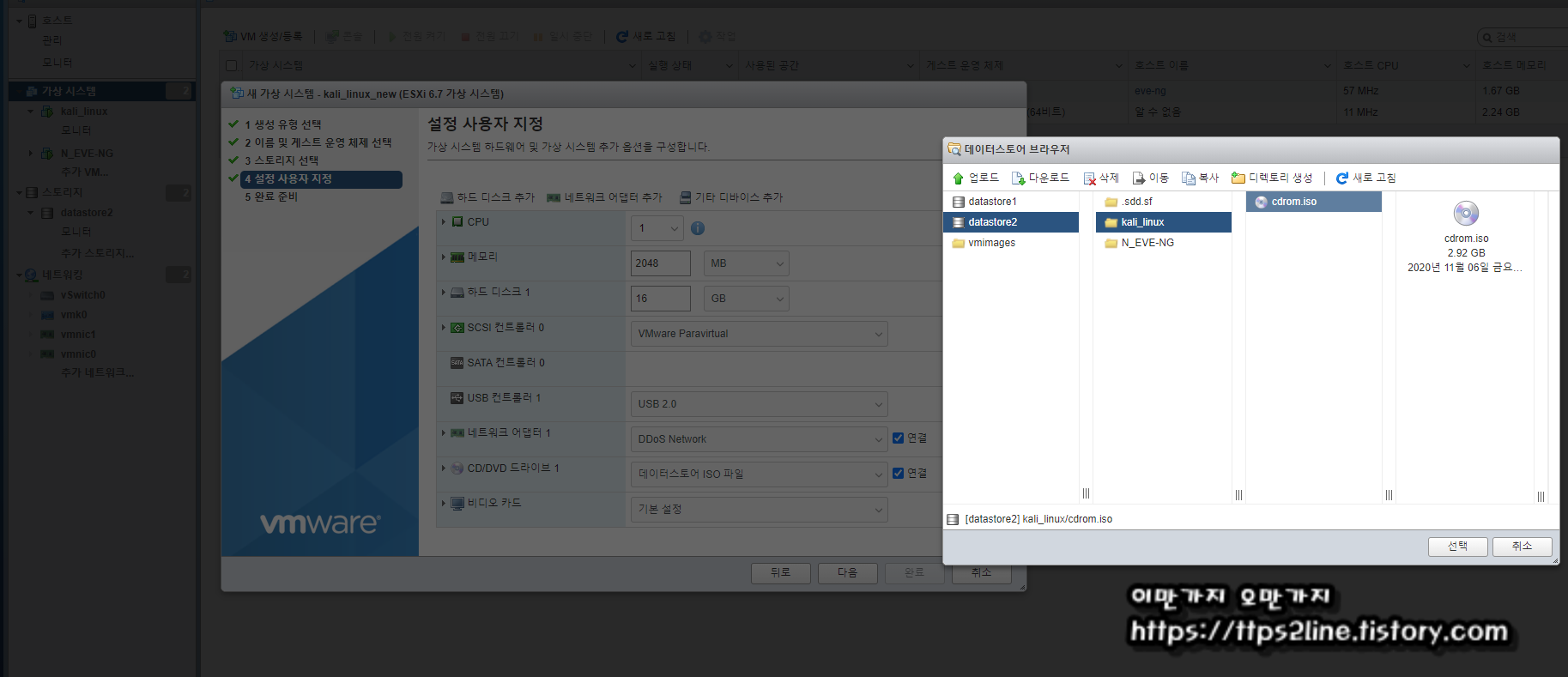 VMware EXSi에 칼리리눅스(kali Linux) 인스톨(install) 버전 설치 방법