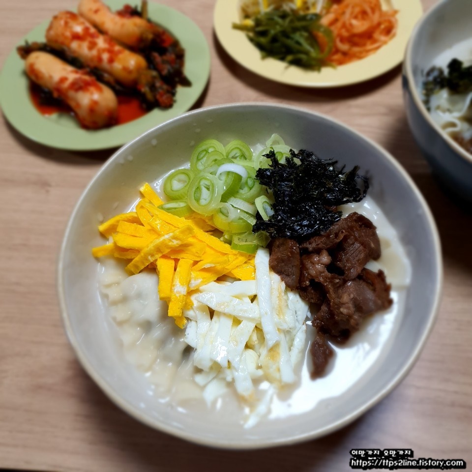 소고기 떡만둣국입니다. 고명까지 만들어 보았습니다. 떡만둣국은 만들기 쉽지만 위에 올라가는 고명을 만들기 쉽지 않다는 것을 알 수 있었죠. 하지만 그냥 먹는 것보다 고명을 위에 올려놓고 먹으니 더욱 맛있게 느껴졌답니다.