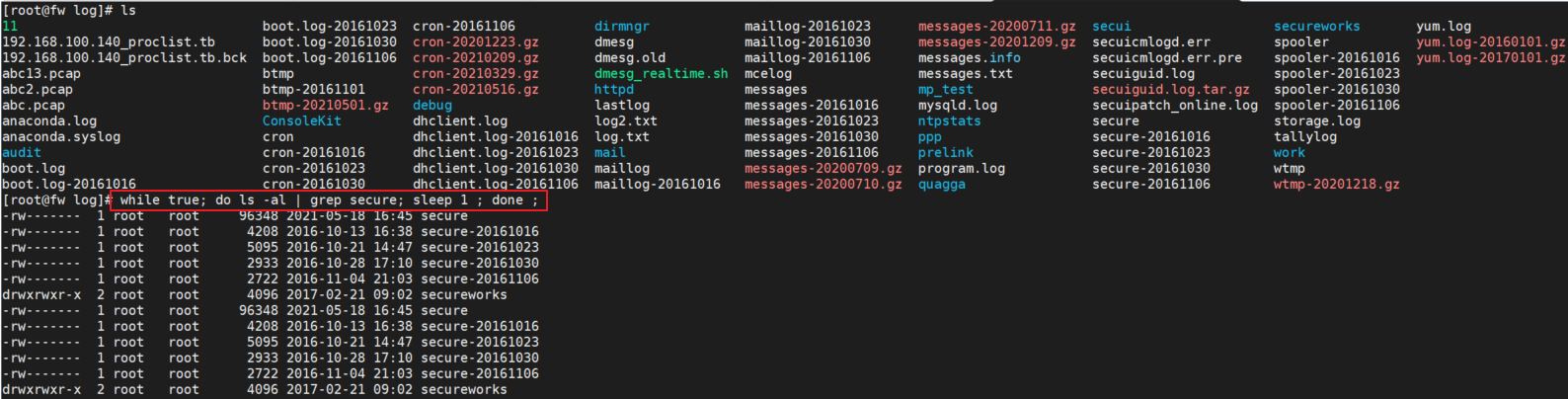 #while true; do ls -al | grep secure; sleep 1 ; done ;